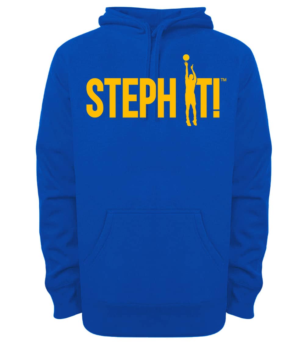 This premium blend hoodie displays 'Steph It!' Design #1. The fabric weight is 8.8 ounces and made from 65% ring spun cotton and 35% polyester. Wash on cold and air dry.