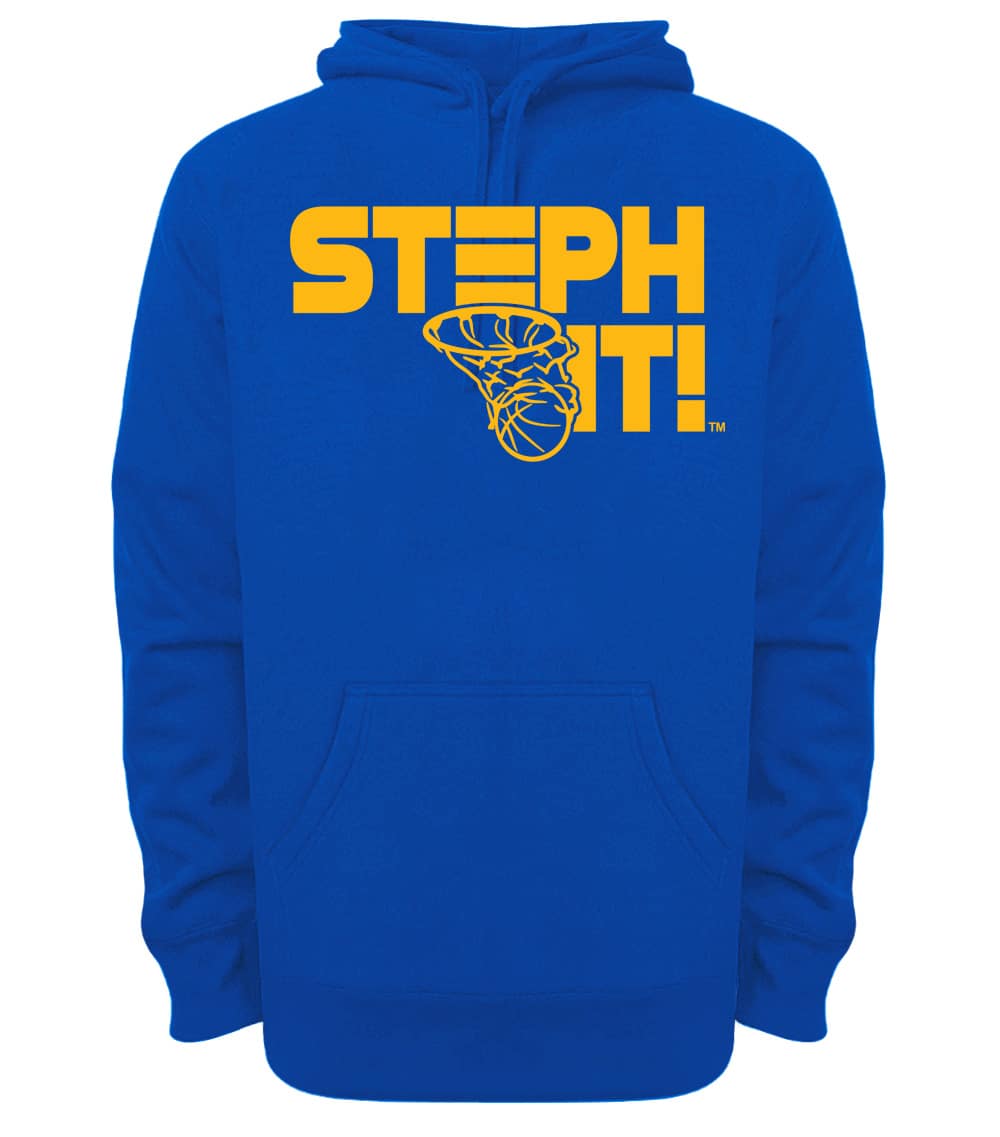 This premium blend hoodie displays 'Steph It!' Design #3. The fabric weight is 8.8 ounces and made from 65% ring spun cotton and 35% polyester. Wash on cold and air dry.